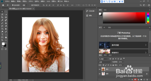 打开要换发型的照片,利用置入嵌入对象的方式嵌入一张模特的发型,如下。