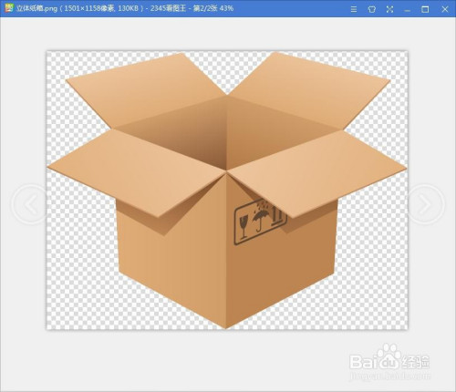 保留后,在我们方才连结的地址找到文件,用看图软件打开,可以看到我们方才导出的文件布景呈灰白网格状(此网格代表透明)