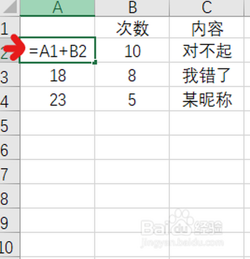 起首我们在A2处输入=A1+B2,然后下拉填充
