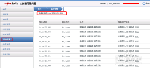 登录InforSuite server节制台,这里将以财政办理系统(南网)作为巡检的案例。打开IE浏览器后,在URL处填写中心件节制台的IP地址以及监听的办事端口。(因为涉及营业系统真实ip,需要将ip埋没)