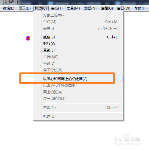 然后我们选择“以圆心和圆周上的点画圆”。这种方式也是可以画圆的。
