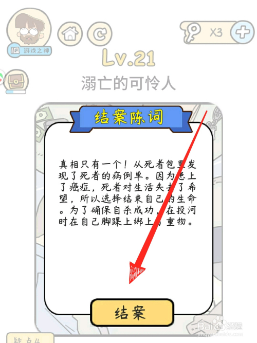最后成果如下图所示,提交四条线索解锁了案陈词即可过关。