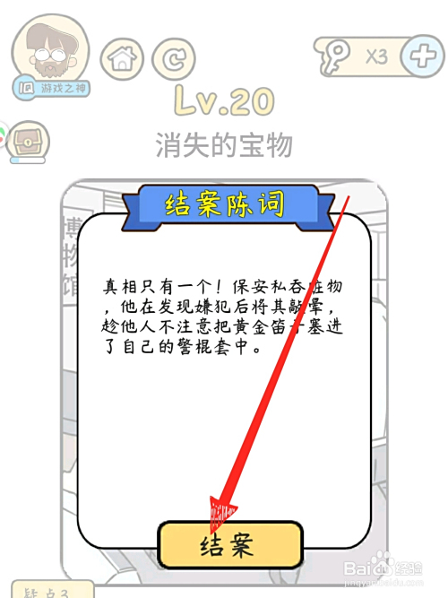 6.最后成果如下图所示,提交三条线索,解锁了案陈词即可过关。