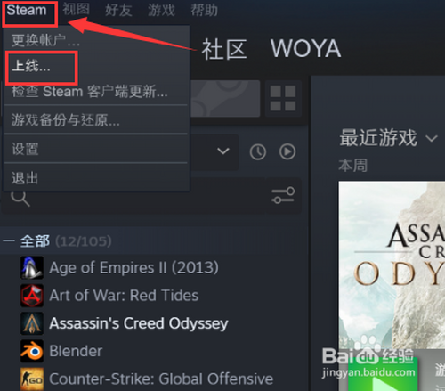 从头启动之后,您再点击左上角的【steam】您就会发现离线启动已经酿成了【上线】,这个时辰就申明离线了