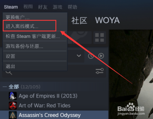 他会弹出一个下拉菜单,鄙人拉菜单中选择【进入离线模式.....】