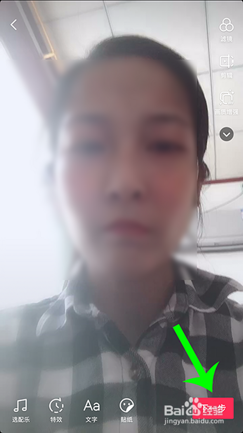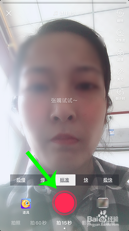 进入到拍摄界面后,点击起头图标拍摄,拍摄起头后,张一下嘴巴,呈现震动脸色后,点击对勾。