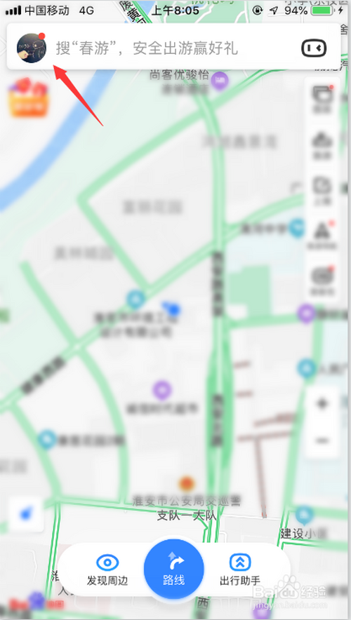 起首,点击百度地图app,进入本家儿页,点击左上角处的“头像”按钮。