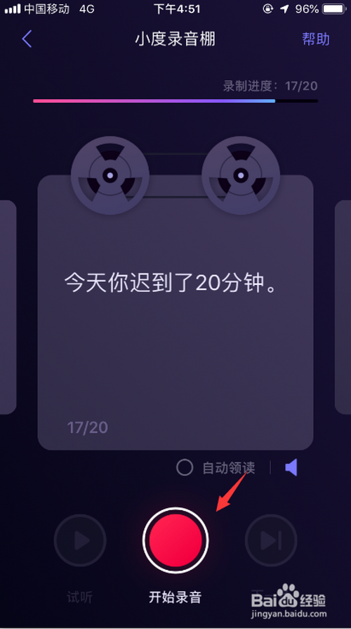 点击“起头灌音”,高声朗读出提醒性文字,录制完当作后,点击“提交我的音频”。