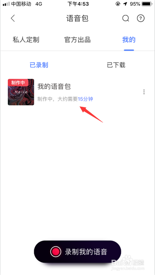 最后点击“完当作编纂”,期待系统主动建造“我的语音包”。