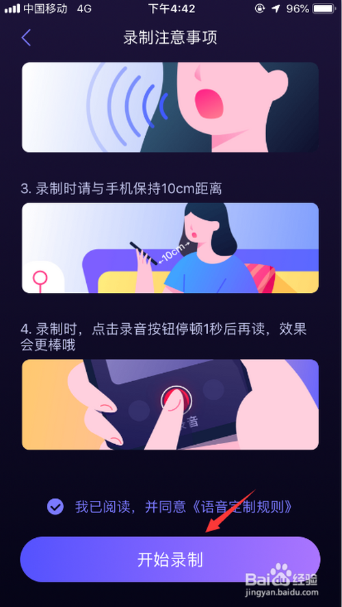 勾选“我已阅读,并赞成(语音定制法则)”,并点击“起头录制”。