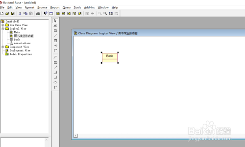双击新建的类图,并点右边控件集中选中的“Class”图标, 并用鼠标在图中拖出一个类图,并起头定名,这里定名为 Book,如图所示。