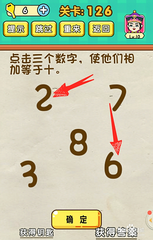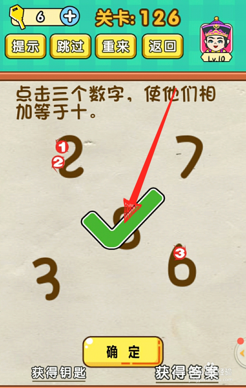 5.最后成果如下图所示,点击两次数字2、一次数字6即可过关。
