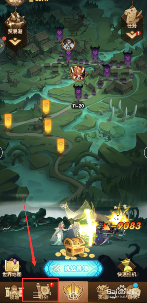 第一:手机打开剑与远征客户端点击左下方的【野外】进口。