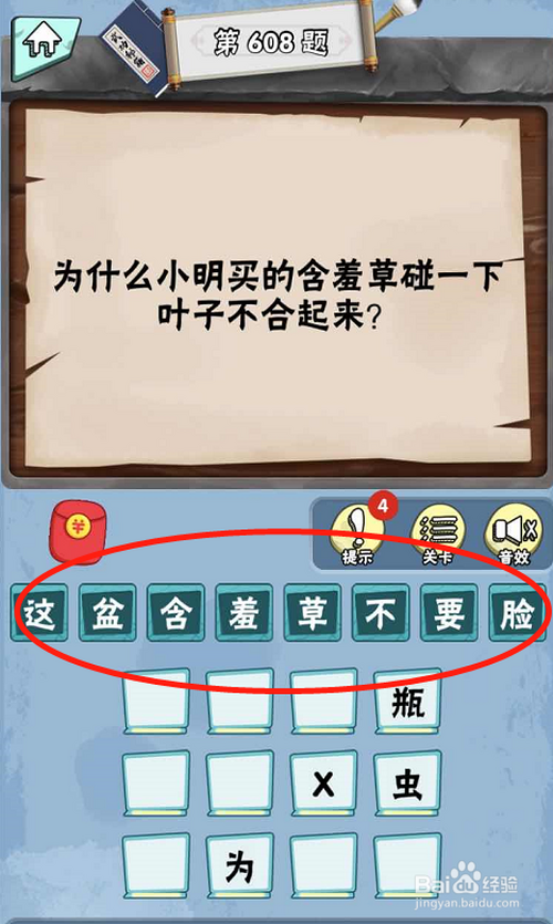 脑子急转弯达人游戏Lv5诺奖得本家儿608关内,提问为什么小明买的害羞草碰一下叶子不合起来。