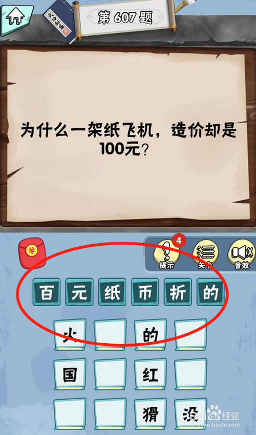 脑子急转弯达人游戏Lv5诺奖得本家儿607关内,提问为什么一架纸飞机,造价确实一百元。