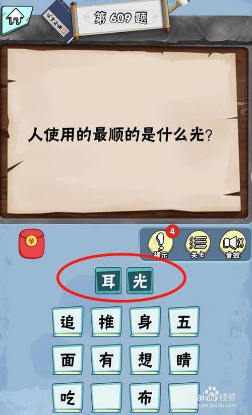 脑子急转弯达人游戏Lv5诺奖得本家儿609关内,提问人利用的最顺的是什么光。