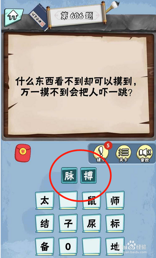 脑子急转弯达人游戏Lv5诺奖得本家儿606关内,提问什么工具看不到却可以摸到,万一摸不到就会把人吓一跳的。