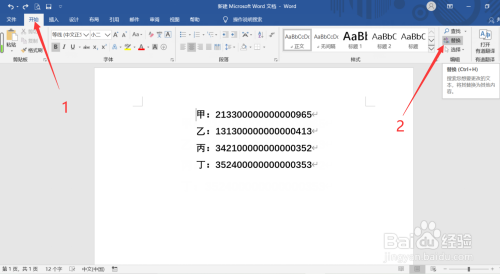 第一步:打开Word表格,点击【起头】选项卡下的【替代】