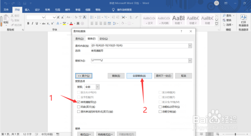 第五步:勾选【利用通配符】,点击【全数替代】即可