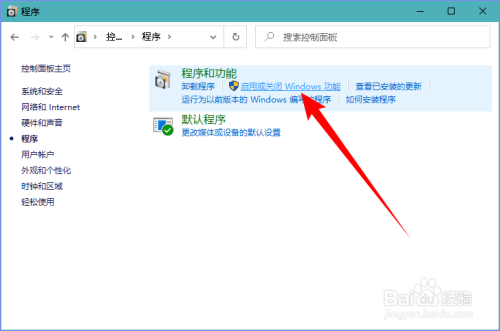 6、依次单击【程序】-【启用或封闭 Windows 功能】;