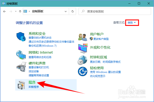 用于共享的用户建立好后,还要授予计较机共享权限。打开“节制面板”窗口,先选择“查看体例”为【类别】,然后单机【程序】。