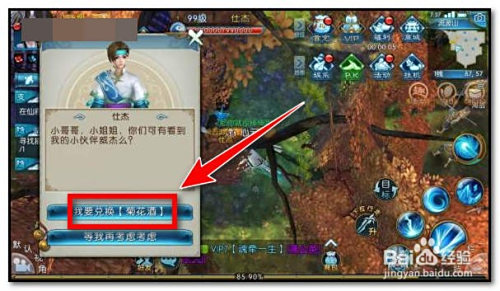 4.在地图输入坐标(83,63)前去垂钓旁的宁哥儿与他扳谈换刻字的葫芦