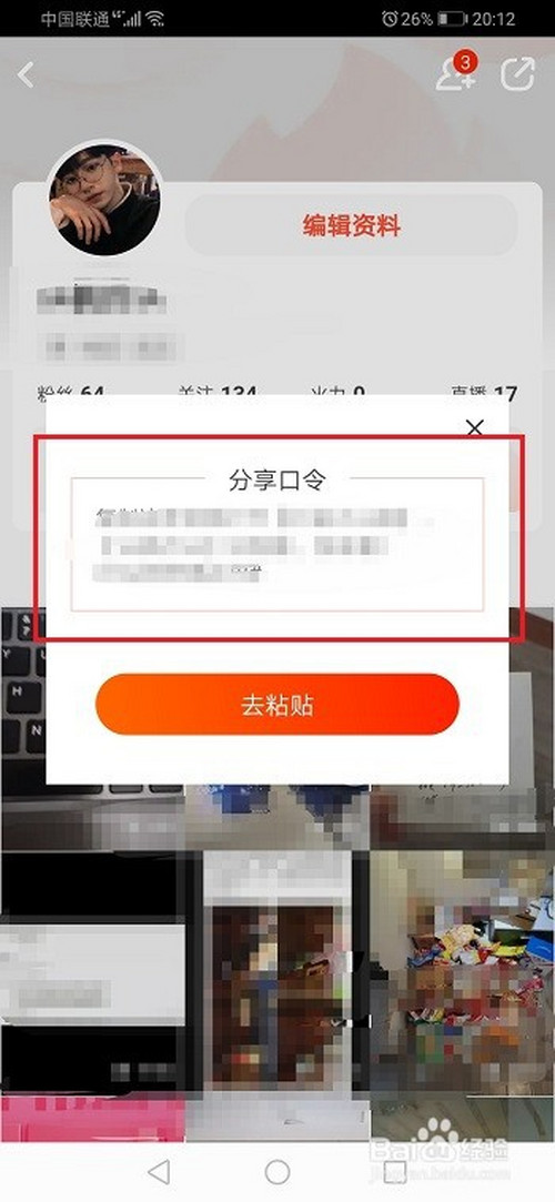 第五步粘贴口令给老友,就当作功分享本家儿页了,如下图所示: