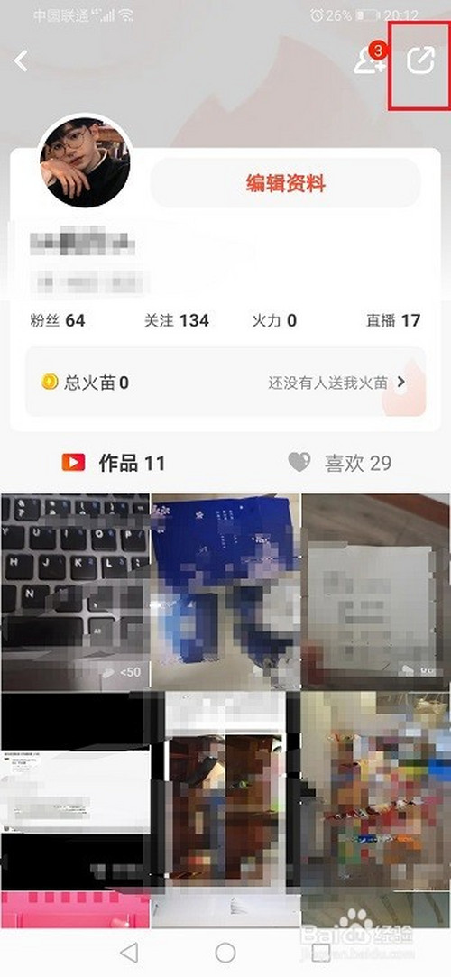 第三步在我的本家儿页界面,点击右上方的分享图标,如下图所示:
