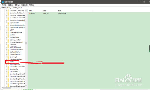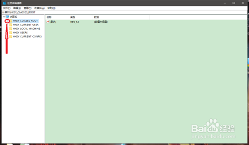 3、找到打开的注册表编纂器中左边第一栏“HKEY_CLASSES_ROOT”,点击他前面的小三角打开。