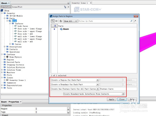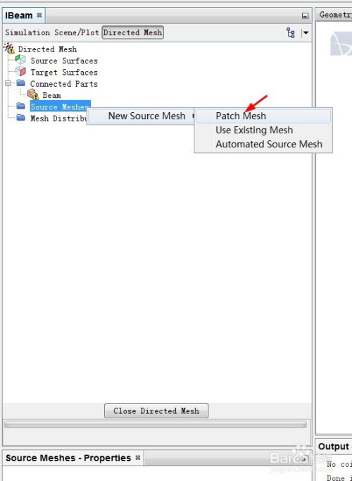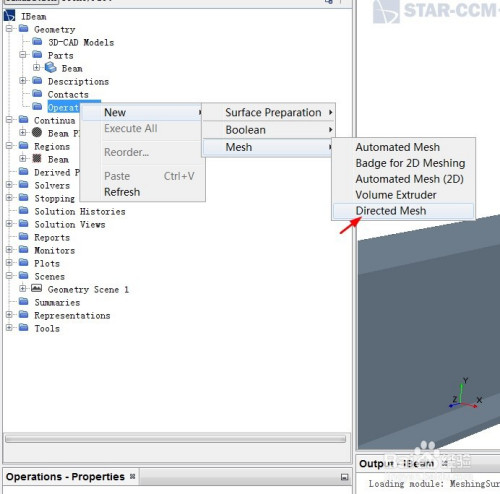 END点击Geometry > Operations > New > Mesh > Directed Mesh,Input Parts选择Beam。