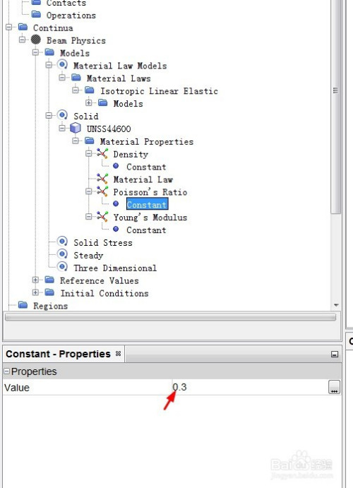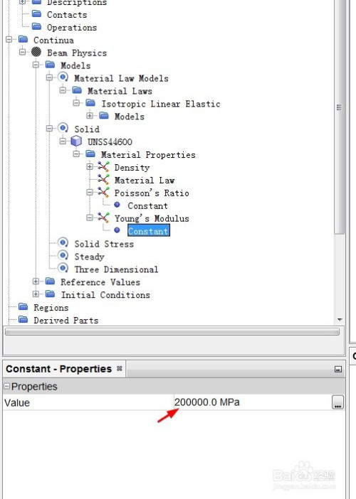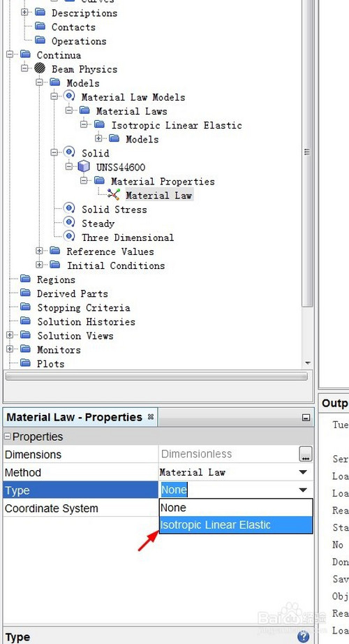 睁开Beam Physics > Models > Solid > UNSS44600 > Material Properties > Material Law,Type选择Isotropic Linear Elasticity。