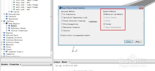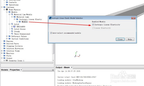 END点击Continua > New > Physics Continuum,定名为Beam Physics,设置solid stress模子。