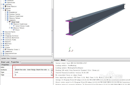 点击Segments > Shear Load,Type选择Load,Surfaces选择free side - lower flange、free side - upper flange、free side - web。