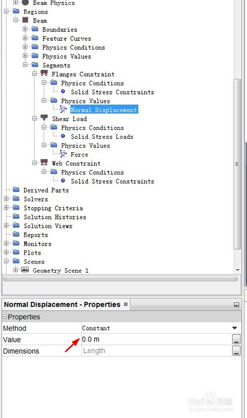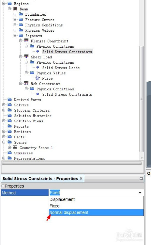睁开Flanges Constraint > Physics Conditions > Solid Stress Constraints,Method选择Normal Displacement。