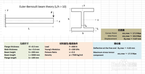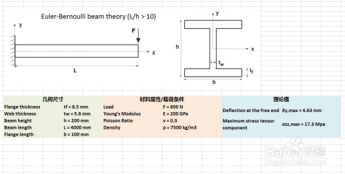 按照Euler–Bernoulli beam theory计较工字型悬臂梁受力后的变形特征。