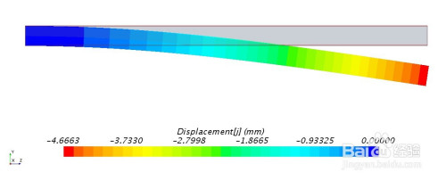 END位移分布。仿真最大位移约为4.67 mm,理论值为4.63 mm,误差小于1%。