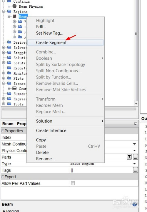 施加载荷前提。点击Regions > Beam,右键Create Segment,定名为Shear Load。