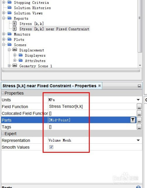 复制Stress [k,k],定名为Stress [k,k] near Fixed Constraint,Parts选择Mid-Point。