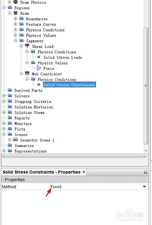 睁开Web Constraint > Physics Conditions > Solid Stress Constraints,Method选择Fixed。