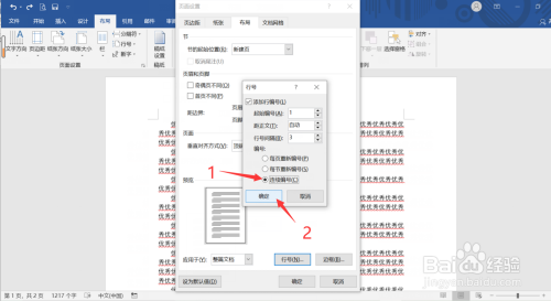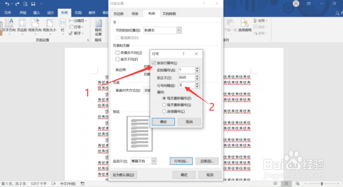 第四步:勾选【添加行编号】,再将【行号距离】右侧数据改为3