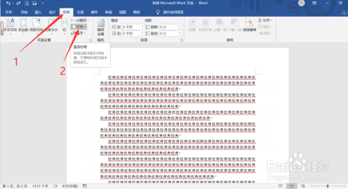 第一步:打开Word文件,点击【结构】选项卡下的【行号】