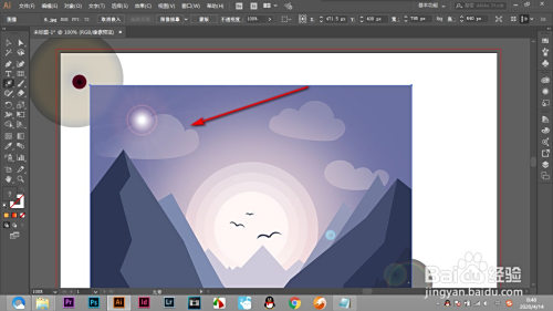 3.然后在画面中的一个位置点击一下呈现一个太阳圈。