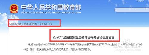 第一:电脑进入中国教育部官网查看【全平易近国度平安教育日有关勾当信息通知布告】。