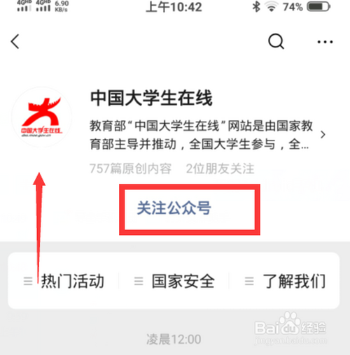 第四:然后存眷【中国大学生在线】公家号并点击进入。