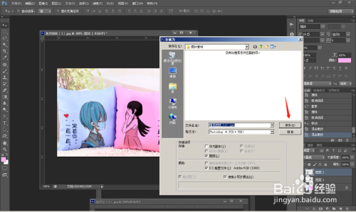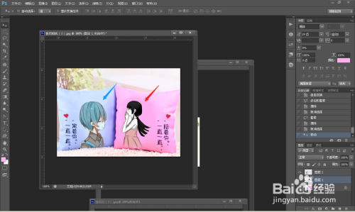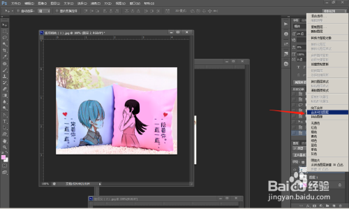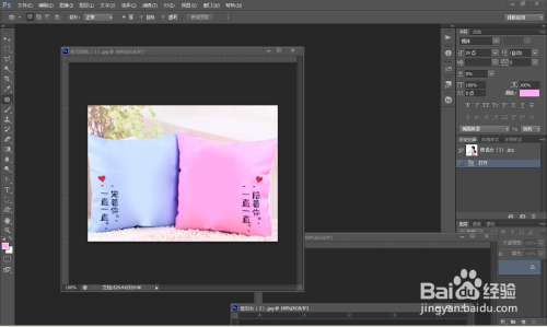 第四步; 移动听物图片到情侣抱枕上面。看图解