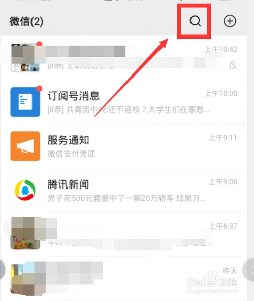 第一:手机打开微信点击右上角【搜刮按钮】。