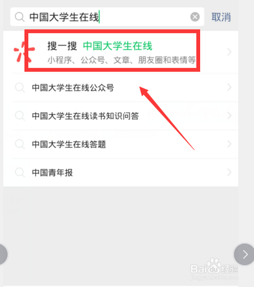 第二;在搜刮框内输入【中国大学生在线】点击搜素。