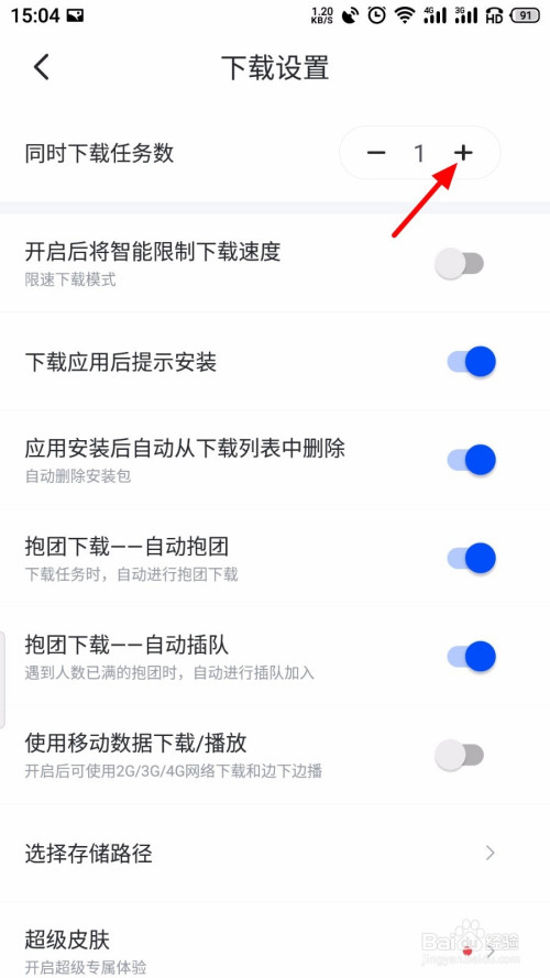 鄙人载设置页面,点击同时下载使命数右边 ✚;