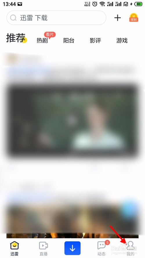 登录进入后,在迅雷首页,点击 我的;