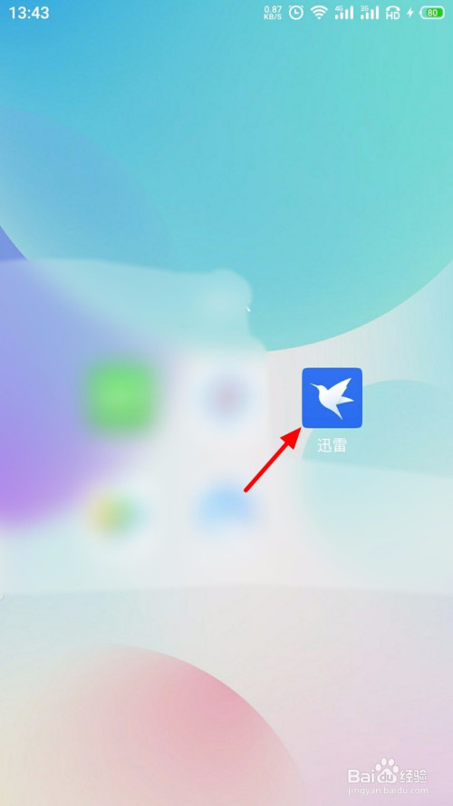 手机开机,在手机桌面打开 迅雷;